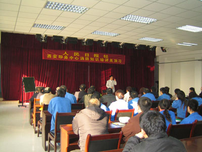 为增强职工防火意识,加强消防管理,提高全体职工实践技能和心理素质,11月25日西安印务中心特邀西安市消防安全防火中心教官进行消防知识培训,之后进行了灭火实战演练。各班组长、义务消防员、安全防火员和重点部位人员共六十多人参加了此次活动。